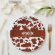 Personnalisé classique et tendance peau de vache brune et blanche taches texture design anniversaire fête personnalisée année et nom vaisselle. Poster de animal taches de vache