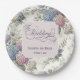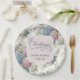 Elegant wedding paper plates featuring delicate hydrangea flowers in shades of dusty rose, light purple, and blue.