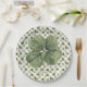 These whimsical St Patrick's Day paper plates features a watercolor four leaf clover with a coordinating green and white gingham background.
