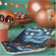 Cette plaque en papier présente une pièce amusante sur le tableau Starry Night de Van Gogh avec une touche d'Halloween. C'est une adaptation amusante d'Halloween à un tableau célèbre, à utiliser pour une fête d'Halloween ou un événement.