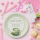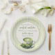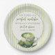 Assiettes en papier pour la Baby Shower de la mariée aux rayures vert clair et minimalistes - Elle a trouvé son matcha parfait - Élevez la décoration de votre baby shower de mariage avec ces assiettes en papier personnalisées pour la mariée. Ces assiettes en papier sur le thème de la fête du thé matcha sont parfaites pour la mariée qui aime le matcha, qui aime le thé et tout ce qui concerne la santé et le bien-être. Ce design minimaliste présente une illustration aquarelle d'une riche tasse de thé matcha mousseux avec du lait crémeux sur une soucoupe sur un fond vert sauge rayé de couleur menthe. La police de caractères manuscrite apporte une esthétique amusante et décontractée mais élégante. Parfait pour les fêtes de thé de mariage printanières, estivales et même automnales ou pour des soirées de mariage cosy.