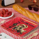 Elevate your 2027 lunar new year entertainment and dining experiences with these celebratory paper plates, which feature the Fire Goat dancing on a luxurious faux red silk background bordered by faux gold foil, plus the Chinese letterform for the Goat/Sheep/Ram in faux gold foil, standing in place of the zero in the year.
