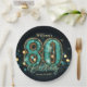 Assiettes En Carton Stylish Vibrant Teal and Gold 80th Birthday