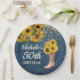 Fleurs de soleil jaune vif, denim bleu, bottes de cowboy et plaques de papier de la parties scintillant de 50e anniversaire personnalisées avec votre nom et votre âge. Contactez-moi pour obtenir de l'aide sur vos personnalisations ou pour demander des produits Zazzle correspondants ou coordonnés supplémentaires pour votre groupe.