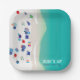 Plaques en papier surf Up Beach Party. Design dispose d'une vue aérienne dessin de la plage et des surfeurs sur le dos. Customisez en utilisant le modèle fourni pour être un parfait pour votre fête.