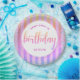 "Joyeux 16ème anniversaire". Voici un ajout unique à sa fête d’anniversaire ! Utilisez ce confetti bleu parties scintillant étincelant, moderne, minuscule, brillant et bleu turquoise, des points de confetti et jaune rose orange violet foncé script typographie contre un rose clair et arc-en-ciel ombre arrière - plan rayé parties scintillant, plaque en papier pour un événement à se souvenir. Personnalisez le texte personnalisé avec le nom de votre invité d’honneur. Votre choix de 2 tailles : 7" ou 9". Garanti d'ajouter du plaisir élégant à sa fête spéciale! Des invitations assorties et coordonnées, des serviettes et d'autres cadeaux d'anniversaire sont également disponibles dans cette collection branchée et spéciale. Il suffit de taper le nom de la fille d’anniversaire et vous pouvez facilement personnaliser cette plaque en papier. S'il vous plaît, envoyez-moi un message avec toute question ou demande.