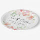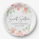 Élégantes et jolies assiettes en papier de fête de 16 ans avec bouquets délicats d'aquarelle rose et corail aux accents d'or et "Sweet sixteen" dans un script élégant et aéré. Personnalisez avec son nom et la date de la fête.