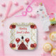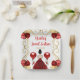 Cette plaque de sweet sixteen est ornée d'un cadre doré élégant, d'une belle princesse aux cheveux bruns et d'une robe rouge, de fleurs et d'un ballon. C'est parfait pour une fête d'anniversaire en sweet sixteen.