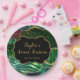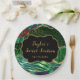 Cette assiette de safari vert et de sweet sixteen d'agate à thème tropical présente des taches de léopard, des rayures de zèbre, des feuilles de palme et des fleurs. Le texte combine écriture manuscrite et polices sans serif modernes pour un look élégant et sophistiqué. Les faux accents de parties scintillant dorée et le poster de animal abstrait créent un mélange parfait de chic et de design.