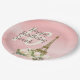 Plaques de papier de fête de 16 ans rose et or sur mesure Sweet avec la Tour Eiffel debout sur un arrière - plan rose aux élégantes fleurs blanches.