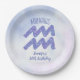Cette jolie plaque de papier de fête d'anniversaire Aquarius, violet et lavande personnalisées, présente votre signe astrologique du Zodiac dans une belle étincelle comme les constellations. Customisez ce décor mignon avec votre nom dans une belle écriture cursive pour quelqu'un qui a un anniversaire fin janvier ou début février.