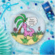 Jolie plaque d'anniversaire de dinosaures rose dessinée à la main pour une petite fête d'anniversaire à thème de dinosaure.