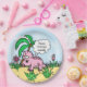 Jolie plaque d'anniversaire de dinosaures rose dessinée à la main pour une petite fête d'anniversaire à thème de dinosaure.