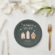 Whimsical Christmas theme baby shower plate featuring illustration of gingerbread houses with pink accents. The text says "it takes a village."