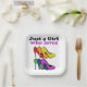 Colorée talons hauts, cette conception présente des talons hauts colorés et un texte disant "Juste une fille qui aime les talons".