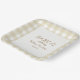 Tan gingham square baby shower plate.