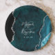 Assiettes En Carton Teal Blue Agate Silver Script Wedding