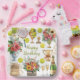 Assiettes En Carton Tennis Anniversaire avec Fleurs et boule aquarelle