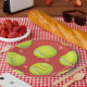 Ces assiettes en papier mignonnes avec boule rayée rouge et motif de flocon de neige ferait un merveilleux ajout à votre fête de tennis de Noël! Modifiez facilement le texte en cliquant sur l'option "personnaliser ce modèle".