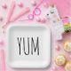 Texte YUM noir contemporain sur un arrière - plan blanc. La couleur Arrière - plan peut être modifiée. Le texte est modifiable.