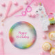 Moderne rose rouge jaune orange bleu vert Texte manuscrit personnalisé Joyeux Anniversaire Modèle Artisanat & Fournitures de fête / Fournitures de fête / Vaisselle / Papier & Assiettes de fête / Assiette en papier ronde classique.