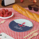 Assiettes En Carton Texte personnalisé Ancre rouge rayé bleu foncé