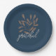 Plaques de papier de style rustique d'automne en bleu marine avec feuille brun, Crème blanc script "reconnaissant" Vous pouvez facilement personnaliser à votre propre phrase. Belle table de mise en papier assiettes pour la décoration automne et automne. Fête de l'action de grâce.
