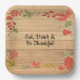 Thanksgiving Mangez Boire & Soyez Joyeux Plaques Brown en bois. Peut être pour Friendsgiving ou toute autre occasion. Personnalisez ce modèle avec vos informations. Customisez-le davantage pour apporter d'autres changements.