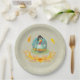 Un ensemble de plaques en papier avec un design d'action de grâce mignon. Une dinde à l'air drôle, portant un casquette pèlerin et assis avec ses jambes écartées, mangeant une tarte citrouille. Il a aussi un regard délirant sur le visage. Tenir un couteau et une fourchette et prêt à plonger dans ce délicieux dessert. Entouré de quelques fleurs d'automne dorées jaunes et orangées, de glands, de feuilles, de plumes et de sprigs. Crée une finition décorative. Placez-vous sur un arrière - plan de couleur taupe avec un motif damassé très léger.
