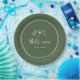 Cette belle décoration de douche de mariée inspirée de l'Italie présente un lettrage cursif de style manuscrit accentué d'une bordure de ruban ondulé en blanc sur un fond vert olive. Des illustrations dessinées à la main de pâtes papillon, de vin et d'un citron sicilien complètent le design pour un look estival de la Côte Amalfitaine. Ces élégantes assiettes en papier pour douche de mariée méditerranéennes présentent "that's amore" en écriture manuscrite avec les noms des mariés en dessous.