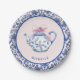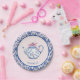 Assiettes En Carton Thé de Noël rose et bleu avec bordure Damas