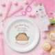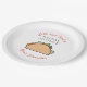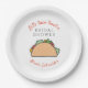 Cette assiette en papier pour l'enterrement de vie de jeune fille sur le thème de la fiesta présente un taco avec la phrase "Let's taco 'bout a bridal shower" en noir et orange. Vaisselle jetable assortie disponible.
