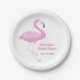 Cette charmante assiette en papier de style tropical présente un flamant rose mignon avec une combinaison de polices de caractères script et bloc dans des tons rose et violet assortis. Personnalisez cette assiette avec un nom et un message de remerciement ou une date.