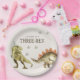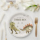 Dinosaur Three-Rex Birthday Party Paper Plates, Dino 3rd B'day Party Paper Plates