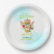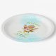 Plaques de papier Tiki Party. Venez faire la fête dans la chambre Hawaiian Tiki ! Une collection amusante et familiale présente un dieu tiki sculpté aux accents de planche de surf sur un arrière - plan de style aquarelle. D'autres articles de fête sont disponibles à la boutique Metro-Events Zazzle et à Metro-Event.com.