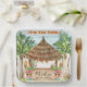 Les assiettes carrées en papier sur le thème du luau tropical présentent un bar Tiki sur la plage peint à l'aquarelle (complet avec un perroquet et des cocktails) encadré par des palmiers, des torches Tiki et des totems avec les légendes "C'est l'heure Tiki" et Aloha dans des polices de style insulaire. Le texte peut être personnalisé (par exemple, il est présenté ici avec deux noms comme pour une douche de couple, mais vous pouvez personnaliser le texte et le changer en "Joyeux anniversaire Marley", ou tout ce qui convient à votre célébration). Parfait pour un mariage, une douche, un anniversaire, un anniversaire ou toute célébration sur le thème de l'île. Œuvre de KL Stock.