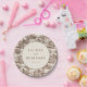 This elegant wedding plate features a vintage-inspired design with a sepia-toned pastoral landscape, showcasing intricate illustrations of houses and trees in muted browns and beiges. The central circular element highlights customizable text in bold serif fonts, surrounded by a seamless pattern that evokes timeless charm and sophistication. Perfect for adding a touch of classic elegance to your wedding celebration, this plate combines detailed artistry with a warm, earthy palette to create an inviting atmosphere.