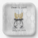 Flûtes de champagne avec arcs noirs sur arrière - plan damassé blanc élégant pour la fête d'anniversaire des mariages en couple. Les noms et la date du mariage sont modifiables.