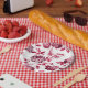 Assiettes En Carton Toile florale rouge pourpre cerisier no 2