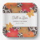 Les plaques de mariage personnalisées sur le thème de l'automne comportent un motif de tourbillons défilants et de feuilles d'érable au-dessus du texte personnalisable "Fall in Love" et un monogramme des noms de la mariée et du marié et de la date du mariage. Les riches couleurs de l'automne sont l'orange, le rouge, le cuivre, l'or et le chocolat.