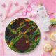 Assiettes En Carton Tons de vert égouttés dans la flamme