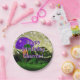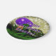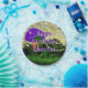 Plaques en papier de Tortue mousseuse avec Joyeux Anniversaire et texte personnalisé. Violet et or avec étincelles, champignon et tortue.