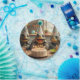 Une assiette de fête avec une photo sucrée de tortues célébrant un anniversaire avec du gâteau et des casquettes de fête, vous pouvez trouver des cartes assorties dans la boutique ainsi que vous pouvez utiliser pour des invitations ou des cartes de remerciement,