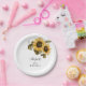 Plaque de papier Boho anniversaire avec aquarelle illustrant des tournesols jaunes avec l'haleine du bébé.