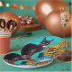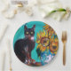 ASSIETTES EN CARTON TOURNESOLS AVEC CHAT NOIR EN BLEU TURQUOISE