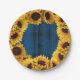 Assiettes En Carton Tournesols rustiques Marine Bleu Grange Bois