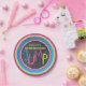 Ce design de plaque de papier est parfait pour une fête de saut de fille ou une fête d'anniversaire de bounceHouse! Présente des couleurs néons vives sur un arrière - plan en damier accentué de points et d'étoiles. Contactez-nous si vous avez besoin que cette conception s'applique à un produit spécifique pour créer un article correspondant! Merci tellement pour voir un DoodleLulu par 2 mois de bogues design!