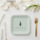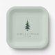 These elegant paper plates feature a minimalist design with a centered evergreen tree illustration on a soft, muted green background. The clean, sans-serif typography adds a modern touch, making them perfect for formal occasions like weddings or sophisticated gatherings. The serene and balanced composition creates a tranquil atmosphere, ideal for celebrating special moments in style.