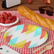 Assiettes En Carton Triangles jaunes, rouges et bleus cadets
