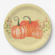 Jolies plaques d'automne avec un trio de citrouilles aquarelles avec branches de feuilles d'automne sur arrière - plan burlap léger.